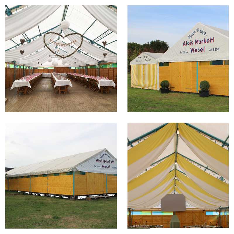 Markett Festzelte sind mit Holzwänden ausgestattet und in folgenden Größen und Zusammenstellungen erhältlich: